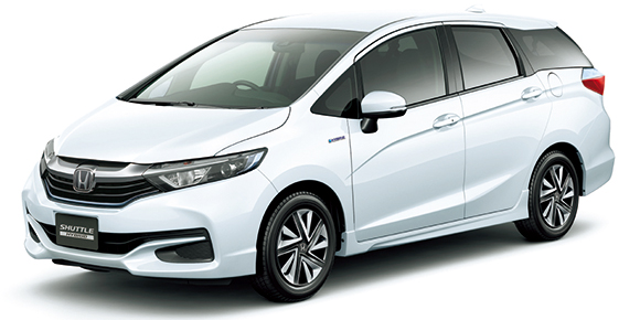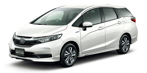 上質な走りを融合した新しいコンパクトステーションワゴン「シャトル」。ラインアップは、ハイブリッド車、1.5LアトキンソンサイクルDOHC i‐VTECi‐DCDエンジンに7速オートマチックを組み合わせる「ハイブリッド ホンダセンシング」、「ハイブリッドX ホンダセンシング」、「ハイブリッドZ ホンダセンシング」、ガソリン車、1.5L直噴DOHC i‐VTECエンジンに無段変速オートマチックを組み合わせる「G ホンダセンシング」を設定。5ナンバーステーションワゴンのハイブリッド車として初めて4WDを設定した。全車に先進の安全運転支援システム「Honda SENSING(ホンダセンシング)」を採用し、ミリ波レーダーと単眼カメラによる車両前方の状況認識と、ブレーキ、ステアリングの制御技術が協調し、安心・快適な運転や事故回避を支援。今回、マイナーチェンジを行い、内外装デザインを刷新するとともにさらに機能を充実させた。エクステリアは、低重心でワイドなスタイリングを目指し、前後バンパーとフォグライトの形状を変更。さらに、テールゲートとリアコンビネーションランプのデザインを一新し、リアビューのシャープさを際立たせた。また、アウタードアハンドル、フロント・リアバンパーまわりやサイドシルモールなど随所にクロームメッキパーツを配し、上質感を追求。インテリアの加飾には、上品な光沢感のあるピアノブラックを採用。シートデザインを刷新するとともに、新たに本革シートを設定し、仕立てのよさにこだわった質の高いインテリアとした。また、リアセンターアームレストへのカップホルダーの追加により使い勝手も向上。「Honda SENSING(ホンダセンシング)」には、従来の8機能に加え、オートハイビーム(LEDヘッドライト装着車に設定)を追加。前走車や対向車を検知してハイ/ロービームを自動で切り替え、良好な視界確保に貢献するとともに、切り替え操作の頻度の低減にもつながる(サポカーSワイド該当)。ボディカラーは新色「ブリティッシュグリーン・パール」を含む全8色を用意。