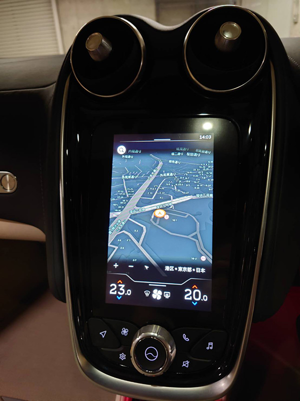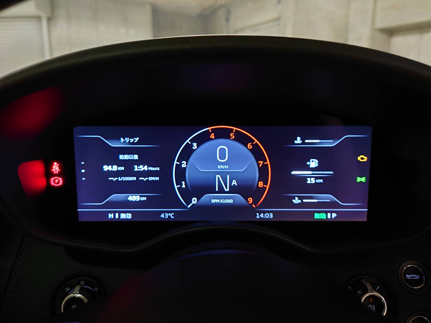 が、これが失敗でした、横羽線で、まさかの事故渋滞…。しかし、ここで、このスーパーカーの信頼性を確かめる事が出来ました。何と30分間に渉り、殆ど動かない時間も含め、ノロノロ運転が続く、という状況の中、エアコンも十分に効き、何も不具合は起こりません。当たり前と言えば当たり前ですが、何しろ720PS 770Nm 0-100km/h 加速2.9秒のクルマです。しかも興味深かったのがアイドリング時にフルディスプレイのメーターの針が昔のスポーツカーのタコメーターの様に小刻みに揺れていたのです。演出なのか、より細かい回転の変化も正確に表示する為なのかは分かりませんが、スポーツカー、スーパーカーとしては、素晴らしい要素だと感じました。