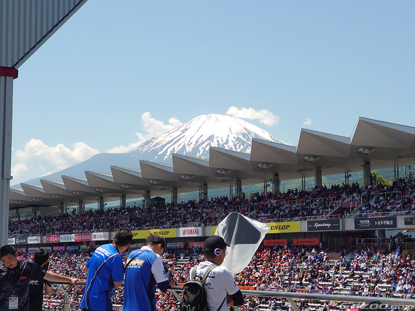 この第2戦を楽しみにしながら富士スピードウェイに向かいました。当日は朝から快晴。前日の予選は11位、BoP(Balance of Performance) に苦しむ中で、小林選手、小出選手が頑張りました。