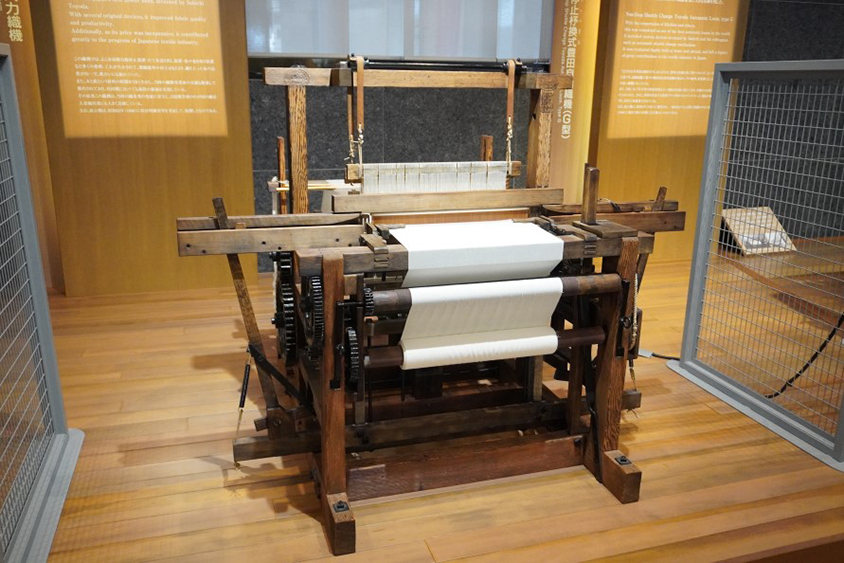 館内は、トヨタ自動車のルーツである「織機」の展示から始まります。喜一郎の父・豊田佐吉が生涯をかけて発明に取り組んだ紡織機です。