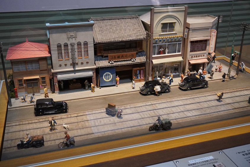 このラジオラマは1935年に東京・芝浦で試作車の運行試験をしているシーンです。1週間かけて、愛知から東京へ向かった理由は車体の不具合を確認するため。案の定、600件近くの不具合が出て、それを一つ一つ修理したそうです。