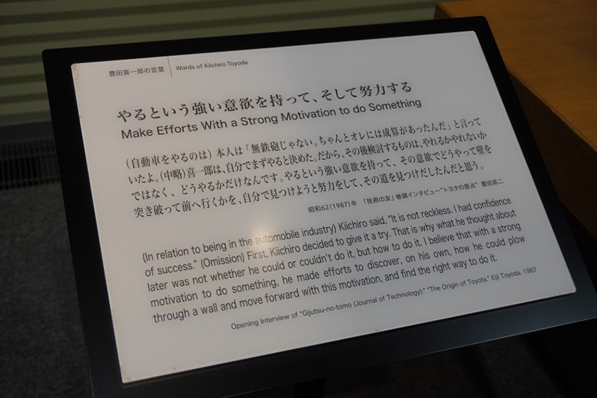 展示室内の至るところにも、豊田喜一郎の言葉が点在