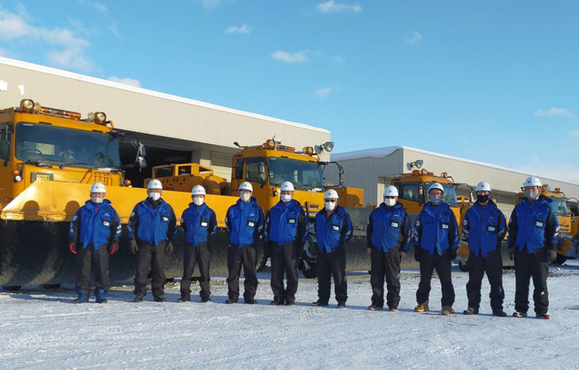飛行機が安全に離着陸できるよう、黒く舗装面が出ている状態であるブラックトップとなるまで徹底的に除雪は行われます。そのために必要とされるのが熟練の技術とチームワークです。大型の除雪機が連なって行う除雪は、事故と隣り合わせなので細心の注意が必要です。経験の長いメンバーからの技術の継承もしっかりと行われています。