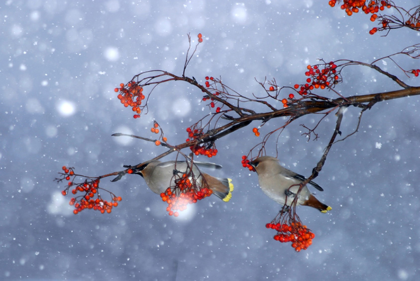 キレンジャクとナナカマド