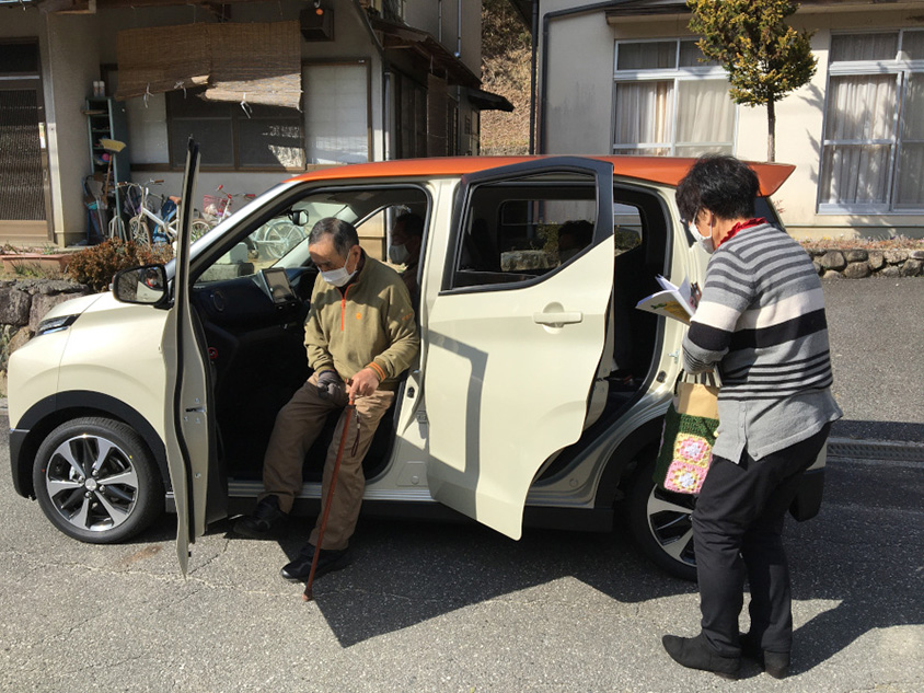 実は、コロナの影響でまだ数回しか乗せていないのだけど、僕、町のたいがいのおじいちゃん、おばあちゃんを知っとるし、向こうも僕のことを知っとるんだわ。信頼関係ができているので、その辺はするっと入れた。