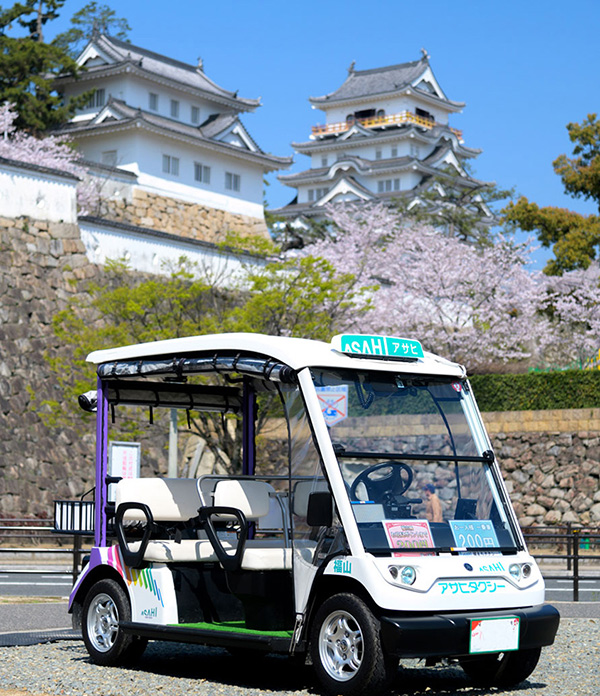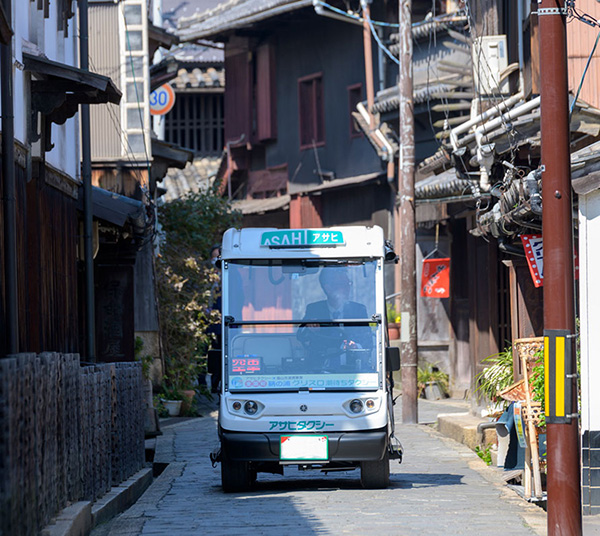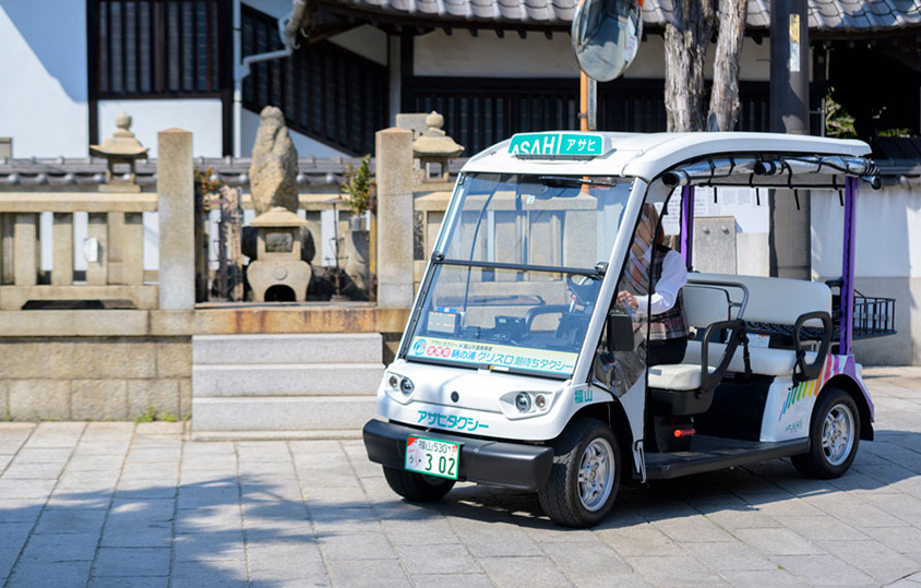 創業72年目を迎える広島県福山市の「アサヒタクシー」は、ヤマハ製のグリーンスローモビリティ(以下、グリスロ)を使って、2019年4月より「グリスロ潮待ちタクシー」を鞆の浦で運行を開始しました。