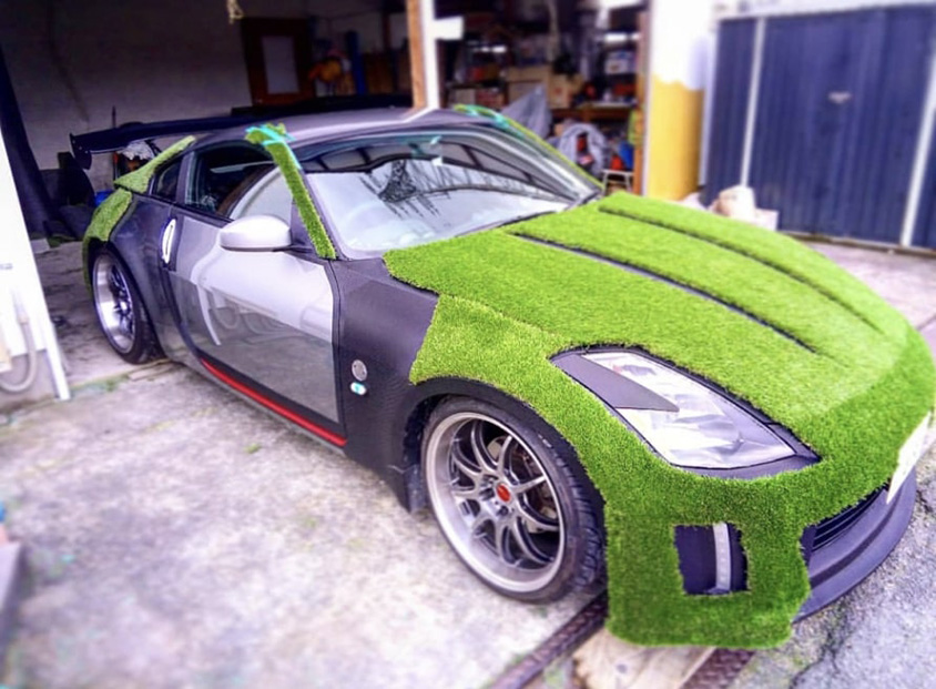 人工芝で覆われた「芝カー」とは? ムーヴ、ライトエース、フェアレディZを自らカスタム