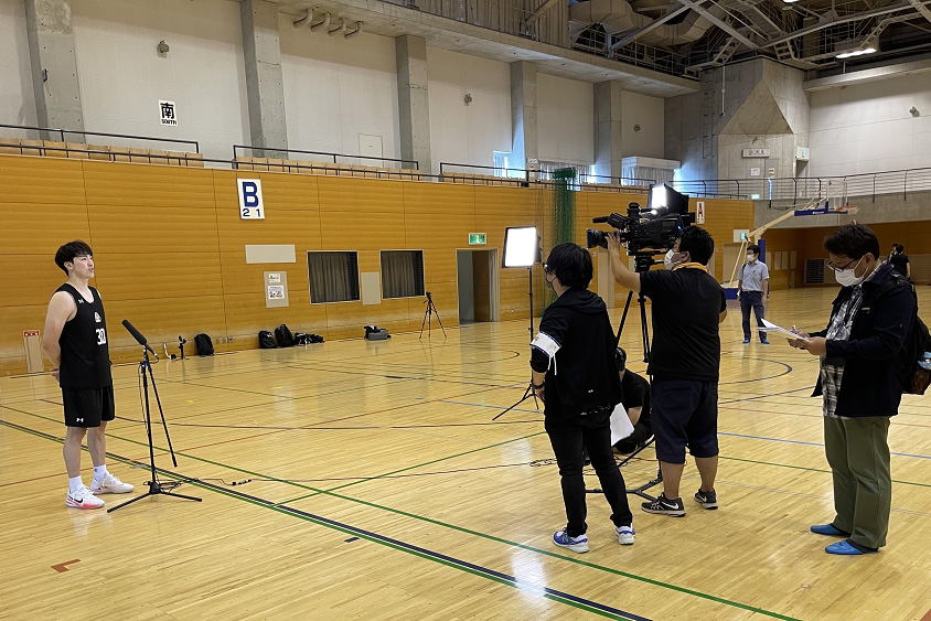 群馬県太田市をホームタウンにするバスケットボールチーム「群馬クレインサンダーズ」の取材風景。地域の話題も積極的に取り入れている