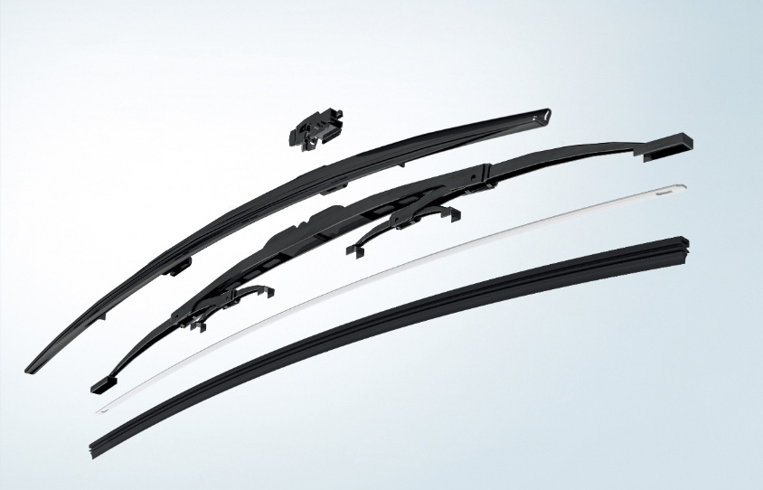 フラットワイパー(フラットワイパーブレード)は2002年にBOSCHが開発したもので、スプリング作用のある素材を軸として採用することで、トーナメント型のように複数の金属フレームを繋げてアーチ型を作らなくても、フロントガラスの曲面にフィットさせることが可能となりました。