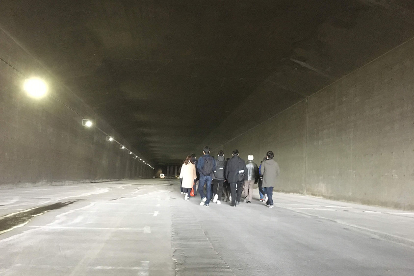 「二つ目は、東京湾アクアラインの裏側を巡るツアーです。東京湾アクアラインにも関越トンネルと同様に避難通路がありますので、実際に歩きながら見学します。