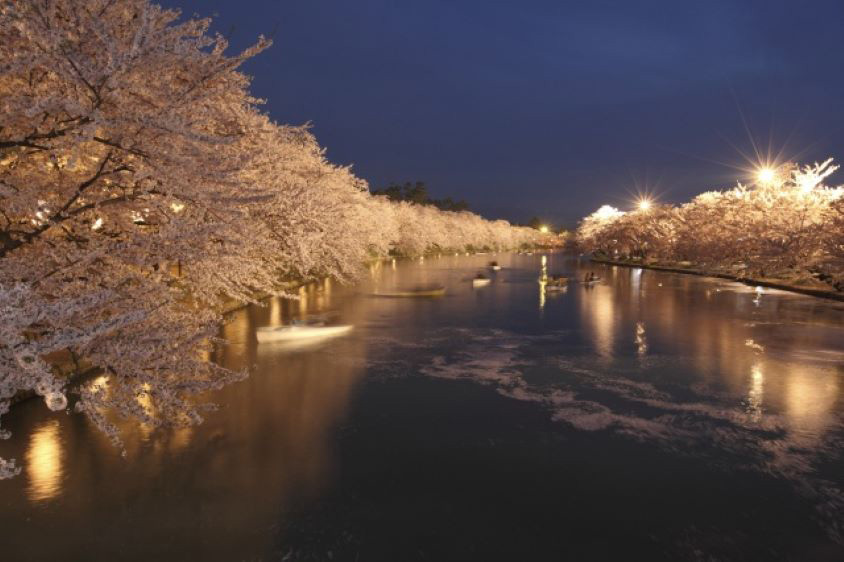 弘前では、「弘前さくらまつり」が開催されております、さくらまつり開催中は夜間のライトアップも実施され、日中にみられる桜とはまた違った雰囲気が楽しめます。