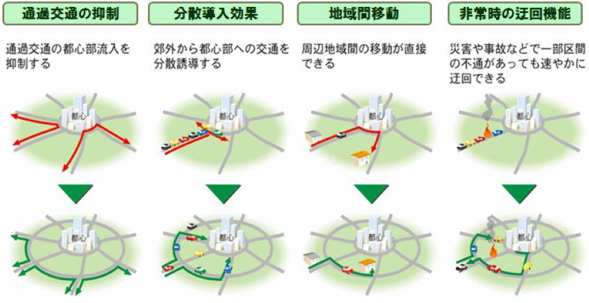 首都高を経由せずに、練馬区~埼玉県~千葉県の移動や首都圏起点の高速道路間の移動が可能となる。