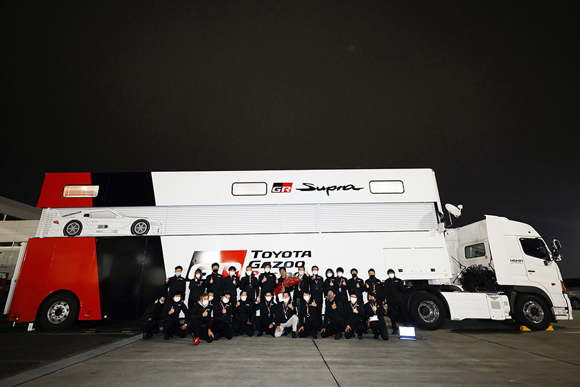 こちらのトランスポーターは、通常レースウィークに備え、会社まで行って大切な機材やクルマのパーツなどを積みこみ、スタッフのみなさんより先にサーキットに向かいます。現在は、トヨタガズーレーシングのトランポが3台。GRスープラ陣営の陣頭指揮を執るTRDの要塞、シャーシやエンジン担当のスタッフのクルマと部品車。GT3車両のカスタマーレーシング用のレクサスのカラーリングの車両が1台と現場には4台留め置きしています。