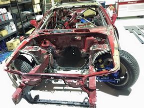 そこからが車業界に身を置く谷口信輝が本領発揮。ヨタハチをすぐにRSファイン(グッドスマイルレーシングのメンテナンスを請け負っているガレージ)に持ち込み、再生作業が始まる。