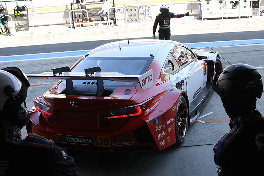35号車LEXUS RC F GT3ブレーキダスト舞うなかでの作業