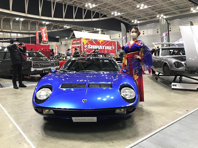 きれいにレストアされたミウラ。2021年AudiTeamHitotsuyamaのRQ、谷美奈さんが花を添える