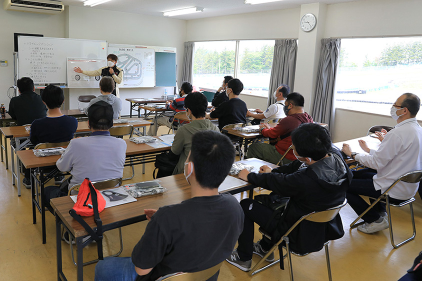 座学のインストラクターは、フォーミュラトヨタのチャンピオンでトヨタドライビングスクールや小林可夢偉選手、中嶋一貴選手を輩出した、FTRS(フォーミュラトヨタレーシングスクール)の講師を務めていた藤田孝博さん。