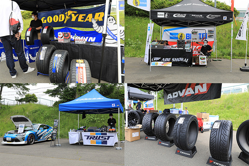 うまく走れるようになってくると、気になってくるのはタイヤの性能。今回は、YOKOHAMA、ミシュラン、GOODYEARが出展し、説明員が愛車に合わせたタイヤの相談に乗ってくれました。またTRUSTはターボキットなどスープアップやGReddy製品を、阿部商会はBILSTEINなど海外パーツの紹介をしてくれていました。