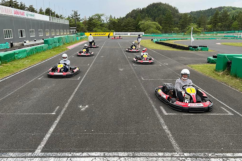 最後は、参加者とレーシングドライバー、宮城トヨタグループ社員も加わり、レンタルカート対決を実施しました。参加者は6分間のタイムアタックしながらカートに慣れてもらい、タイム順にバランスを取った編成とし、それぞれのチームにレーシングドライバーがひとりずつ加わりました。
