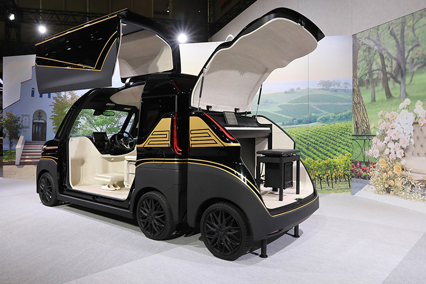 飛行機のファーストクラスのようなラグジュアリーな車内空間。トレーラーには電子ピアノがあるROOX SUITE CONCEPT/日産