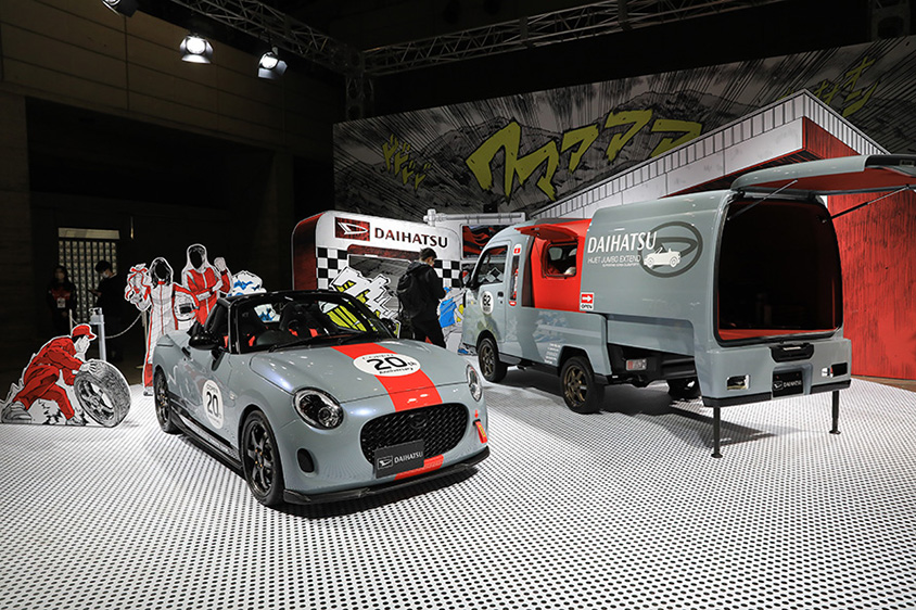 発売から20周年を記念して、ロールバーまで組んだCOPEN CLUBSPORTSと荷室が約1.1mも伸びるHIJET TRUCK JUMBO EXTENDはTASに合わせワンオフパーツで作り上げられています。