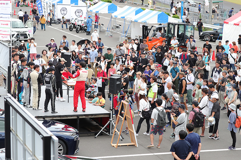 今回はドライバーが10名で、1回30分の同乗を一日3回実施しました。タンデムフォーミュラカーやランクルなど、車種にもよりますが、1台につき最大3名まで乗車可能なので、2日間で約1,000名のお客様に同乗いただき、コースを体感してもらうことができました。