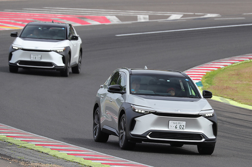 なかなか試乗する機会がないbZ4Xがコースで乗れる。
