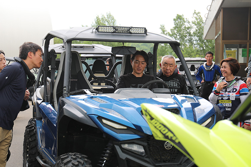 北米で人気のYXZ1000Rをはじめ、数台の四輪バギーに試乗する機会をいただきました。しかもパリ・ダカールラリー時代からの大先輩で、YXZ1000Rでアフリカエコレースに参戦しているダカールの鉄人、菅原義正さんとコドライバーの増田まみさんとご一緒できるというサプライズもあり、ワクワクしながらテストコースへ向かいました。