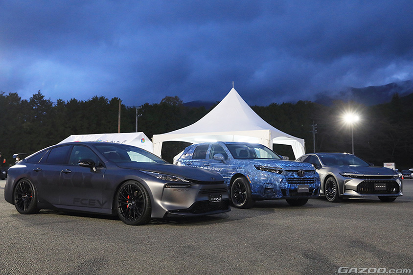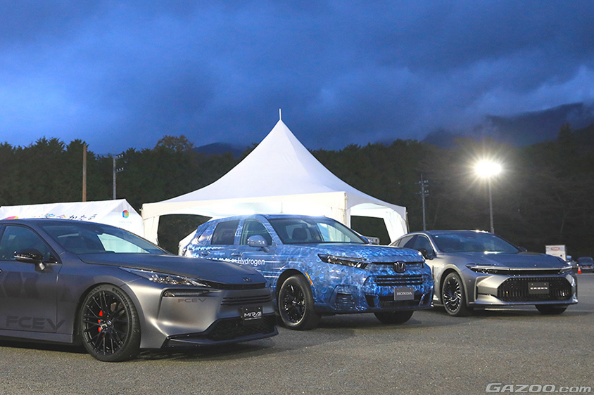11月に富士スピードウェイで開催されたS耐のイベント広場でも、水素利活用のコンテンツがたくさんありましたが、その模様はすでにGAZOO編集部でレポートしているので、こちらをご覧いただきたいのですが、特に注目したのが、3台のFCEVです。