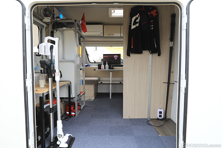 また防災訓練の炊き出しにキッチンカーとして有効性を確認したり、サーキットのパドックで選手たちのプライベートルームとして使用したり、小中学生に水素エネルギーを学ぶ移動教室としても活躍したりしています。