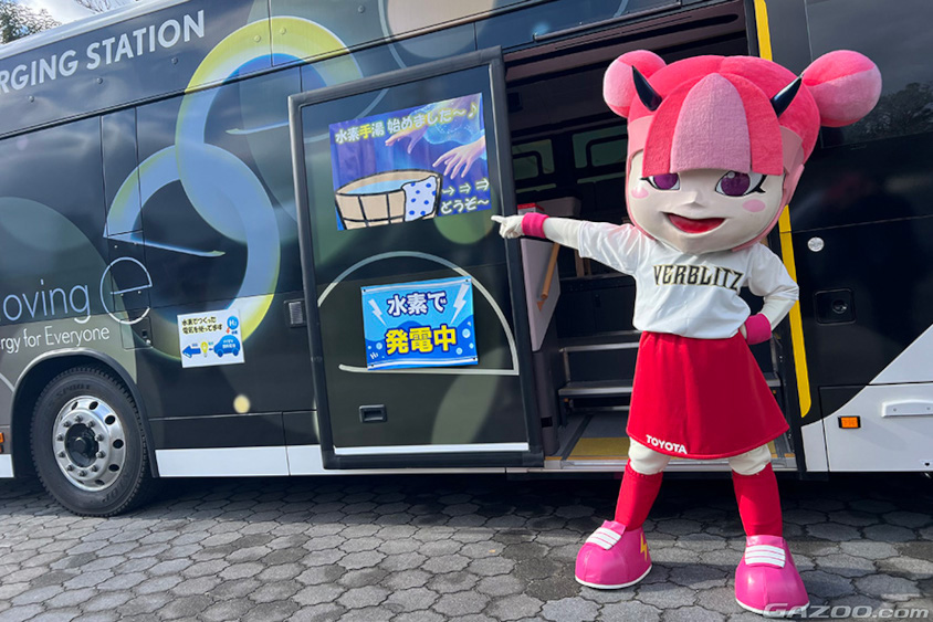 今回トヨタの燃料電池バス「CHARGING STATION」の車内では、発電した電力で足湯ならぬ手湯のサービスを提供していました。