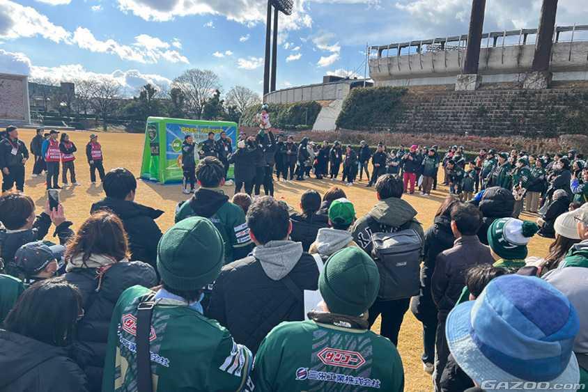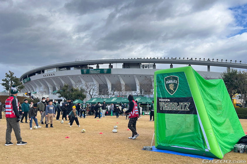 トヨタヴェルブリッツのホームは豊田スタジアムですが、ラリージャパンの関係でまだ使用できないこともあり(豊田スタジアムは2月1日の横浜キヤノンイーグルス戦から)、今回は長良川競技場がホームとなり、早朝から緑色のウェアを着たファンがたくさん観戦に来ていました。