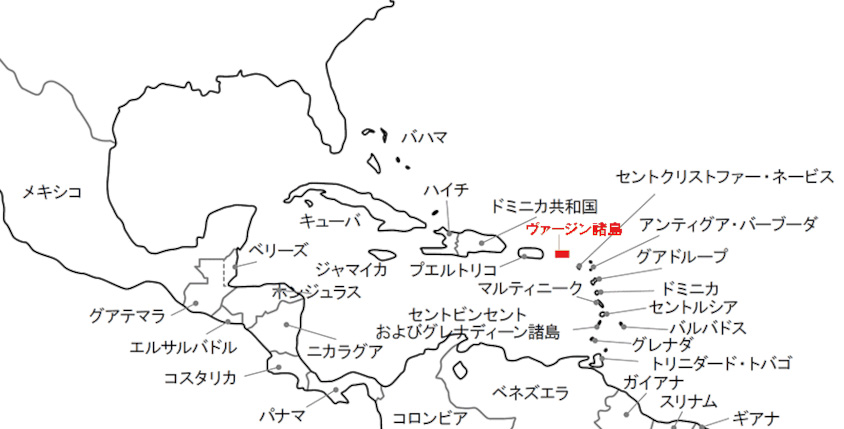 多くの島国が並ぶなかに米領、英領のヴァージン諸島がある