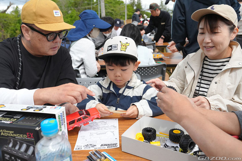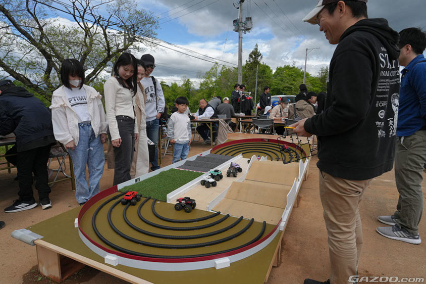 大人は試乗、子どもはミニ四駆で楽しむ