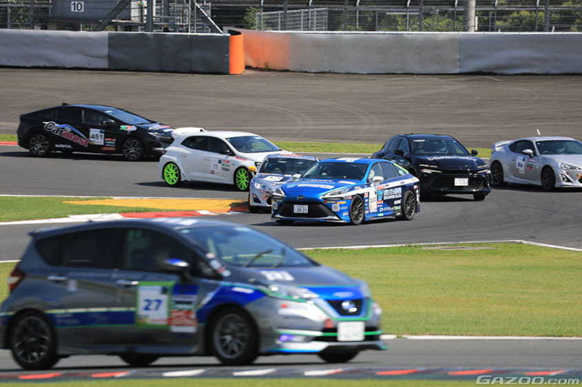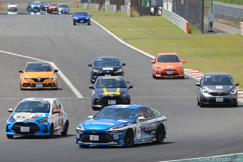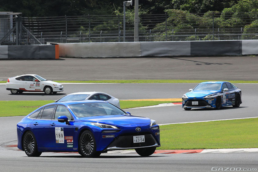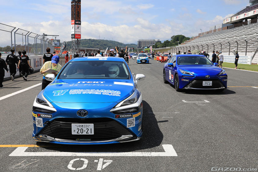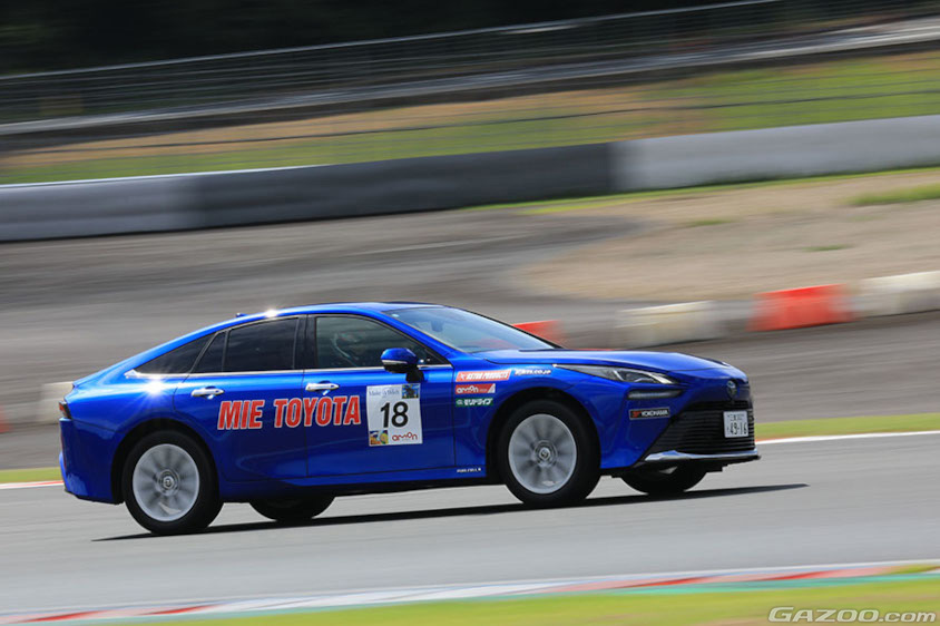 またミライ、クラウン、センチュリーのチーフエンジニアの清水竜太郎さんがミライの製品企画ZSエンジニアとともに参戦。さらにトヨタイムズのスタッフが取材ではなく実体験するためにチームを組んで参戦。FCEVクラスはほかに三重トヨタのディーラーチームもあり、4台のミライが3時間で燃費(電費)と3分15秒のターゲットラップタイムにいかに近いタイム(それより速く走ると減点)で走れるかを競う「Challenge180」にエントリー。