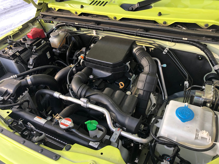車体が1030kgと軽いとはいえ、この直列3気筒「R06A型」ユニット(64PS/96Nm)は本当によく頑張ってくれます。ボクは直列3気筒エンジンの力強いサウンドや独特なバイブレーションが結構好きなのですが、それがジムニーにはとってもよく似合います。