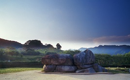 静かに流れる2つの川の合流地点、夢絃峡の下流に位置する川淵。南山城村と深い関わりがあった柳生藩の柳生十兵衛終焉の地といわれ、幽玄の美しさが漂う。