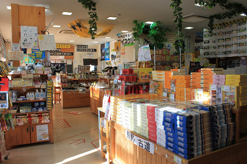 高速道路上にあるパーキングエリアで、地元の特産品や軽食等を販売。人気のおにぎりは売り切れることが多いため、前日15時まで電話連絡での予約販売も行っている。当日の電話でも在庫があれば取り置きでき、受け取りは上り下りどちらでも可能。