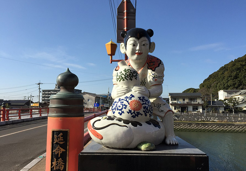 相生橋、延命橋、幸橋の3つは、この順番で渡ると縁起がよいとされる「縁起橋」。相生橋は夫婦円満、延命橋は長寿、幸橋は幸福に恵まれるという。ほかにも相生橋を渡った先には、21世紀の始まりとともに時を刻み始めた「古伊万里からくり時計」や、商店街の両側に建つ「古伊万里美人像」など、美しい伊万里焼を観賞できる。