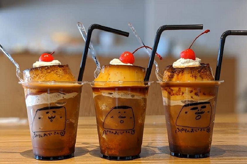 「さがぷりんグラニータ」720円(税込)は、冷たいドリンクの上に佐賀県産の牛乳、卵、きび砂糖で作ったプリンをのせている。