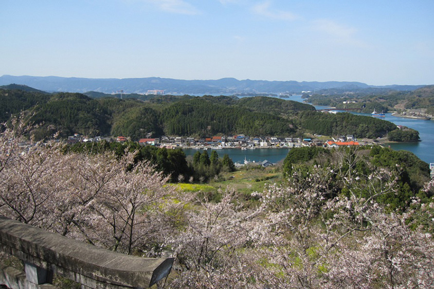 高尾山公園の展望台からは、いろは島(伊万里湾に浮かぶ無人島の総称)を見下ろせる。