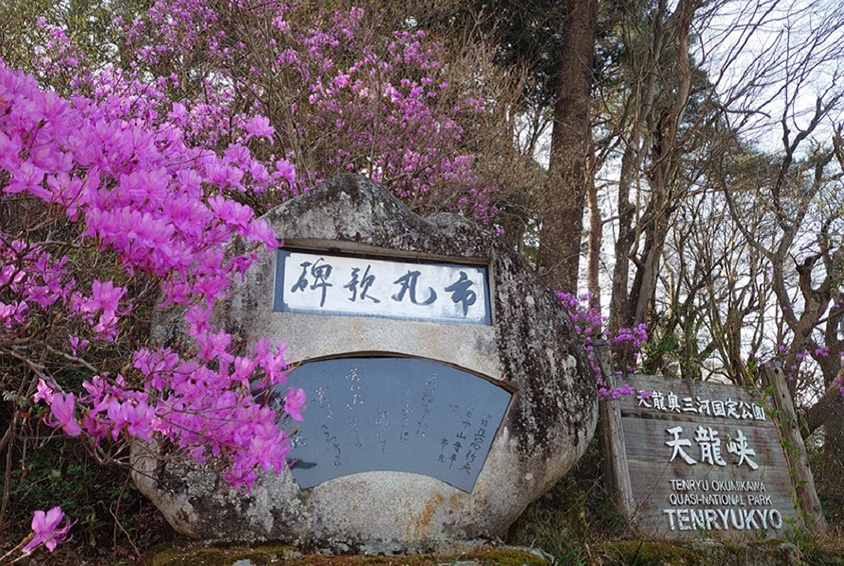 天竜川沿いに渓谷が続く景勝地。飯田市の花に制定されているミツバツツジの名所でもある。