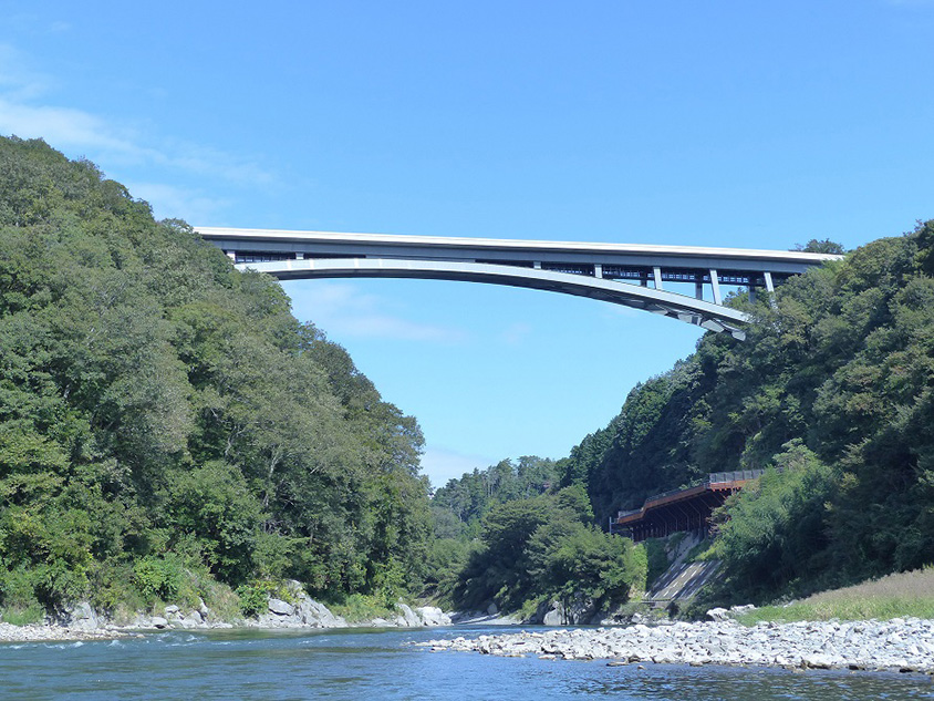 2019年に開通した天龍峡大橋は、名勝・天龍峡の景観になじむ美しいデザイン。