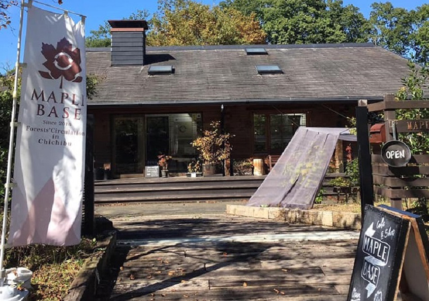 同じく秩父ミューズパークにある「MAPLE BASE」はその名の通りメープルシロップを使ったスイーツやドリンクを販売するカフェ。秩父では、2006年頃から地元に自生するカエデの木から樹液を採取する取り組みを始め、その一環で、秩父産のメープルシロップを提供する日本初のシュガーハウス(メープルシロップの本場・カナダの森にある、メープルシロップを製造する工場や小屋)として2016年「MAPLE BASE」がオープンした。秩父で採れるさまざまな種類のメープルシロップが研究されており、関連商品やオリジナルグッズなどを購入できる。メープルシロップを添えたパンケーキやメープルラテなどをぜひ味わいたい。