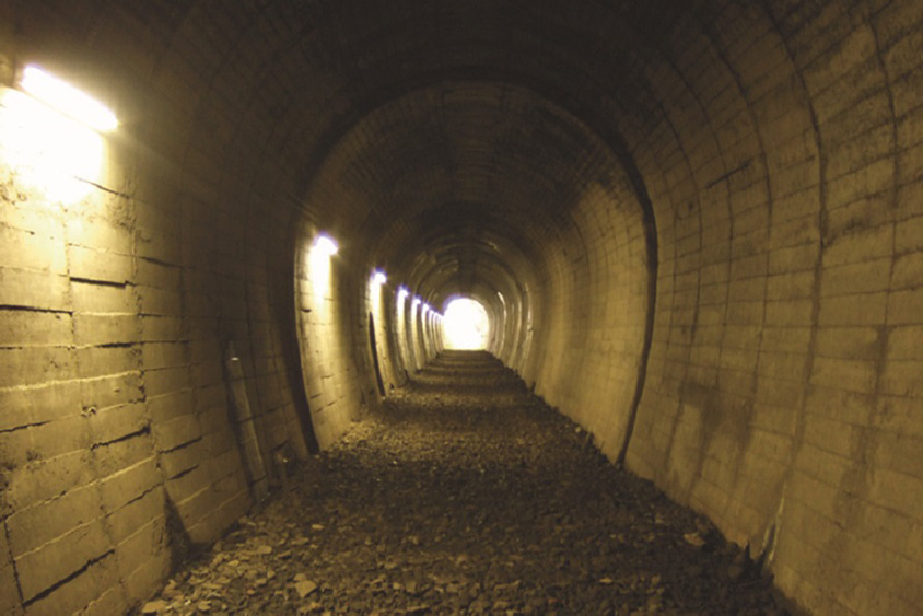 山が多いため、トンネルも多い。トンネルの中も歩行できる。