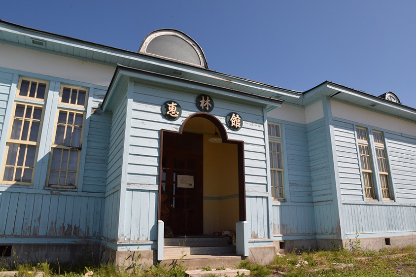 「恵林館」は、象の鼻森林公園展望台から車で約10分の、旧下川営林署庁舎。淡いブルーの外壁にレトロな半円形の飾り窓や独特の造りの二重窓が印象的な建物だ。建物内では下川町と切っても切り離せない森林や林業に関する資料を展示。国道239号沿いにあるので車でふらっと立ち寄ることもできる。