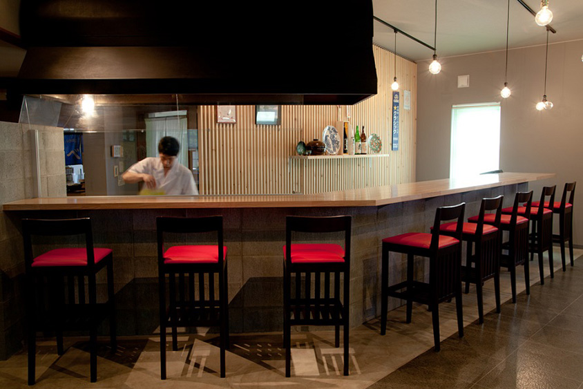 カウンター8席、小上がりは4名席4卓と6名席2卓を完備。