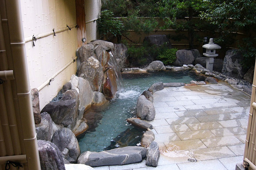 秘境の秘湯といわれる湯の島温泉。内湯のほか露天風呂もある。