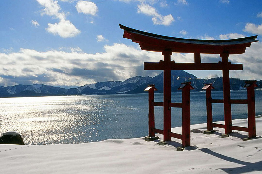 雪の降り積む田沢湖周辺をめぐるドライブを、安全運転で楽しもう。