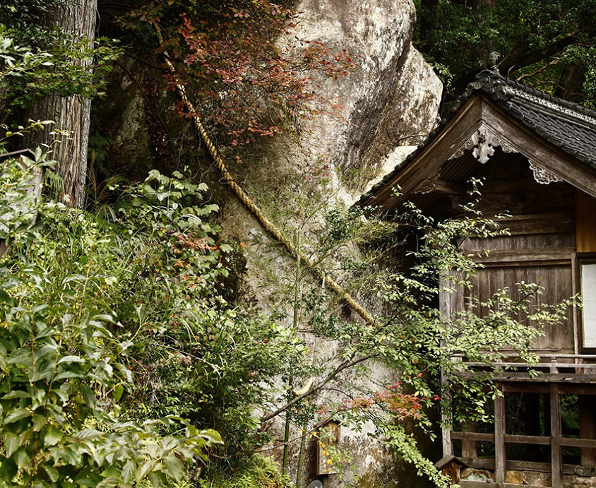 邑南町の「志都の岩屋(しづのいわや)神社」は、標高約606mの弥山(みせん)山腹に位置する神社。神殿の背後にある鏡岩は表面に小さな穴があり、こよりを通して結ぶと願いが叶うといわれ、パワースポットとしても知られている。県の天然記念物、名勝に指定された貴重な文化財で、周囲にはほかにも夫婦岩や行場岩など巨大な岩石群がそびえる。弥山にある珍しい形の岩石の中には、人気漫画で主人公が刀を入れる有名なシーンを連想させる割れた岩石も(top画像)。割岩がある周辺一帯は、漫画の世界を彷彿とさせる森閑とした雰囲気だ。